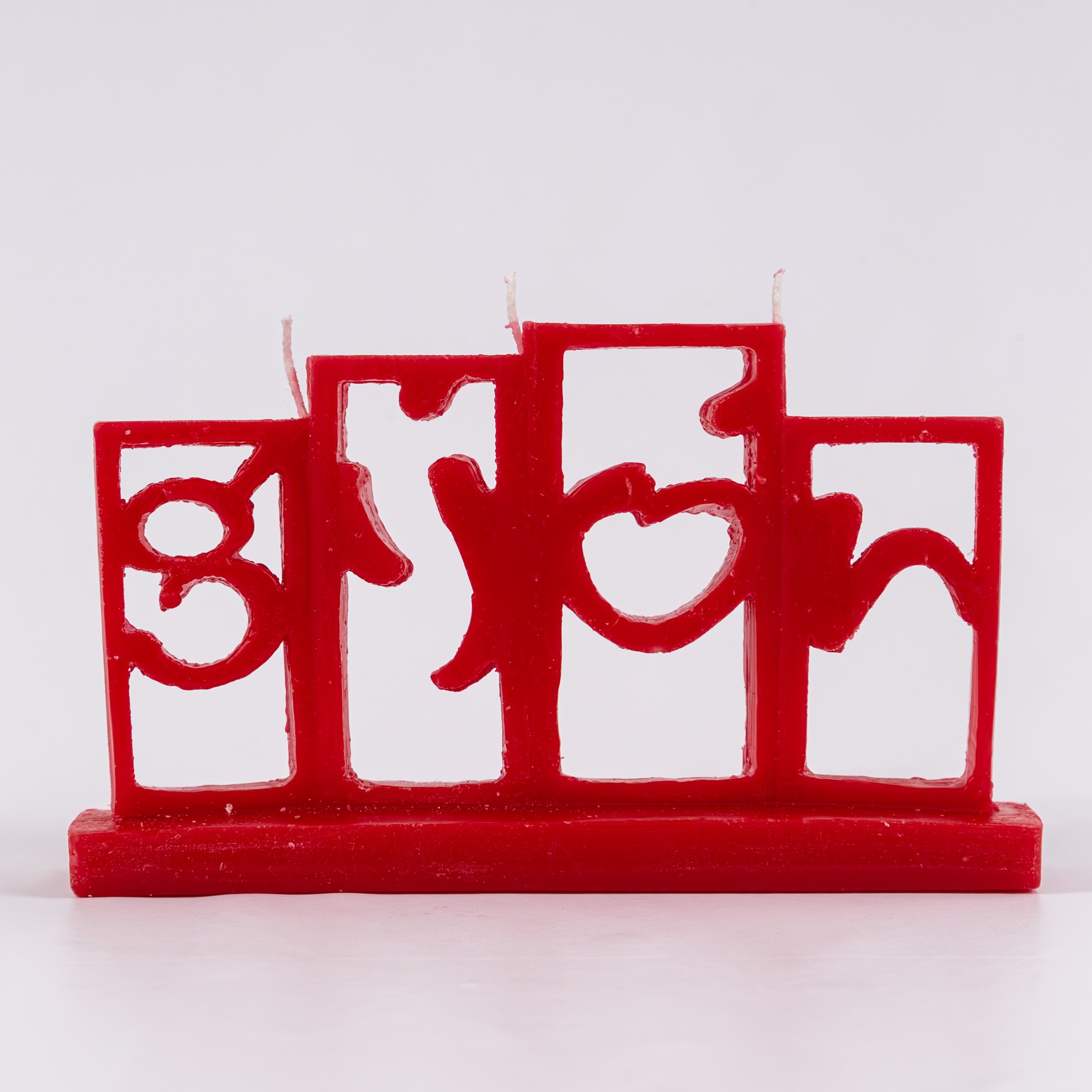 Vela de cera con forma de las letronas de Gijón. Elaborada en color rojo.